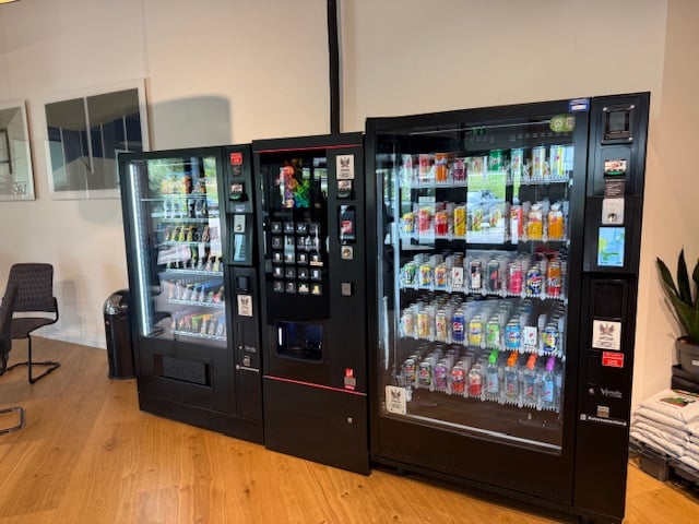 Ihr könnt hier aus vielen Snacks und Getränken auswählen. Auch eine Kaffeemaschine